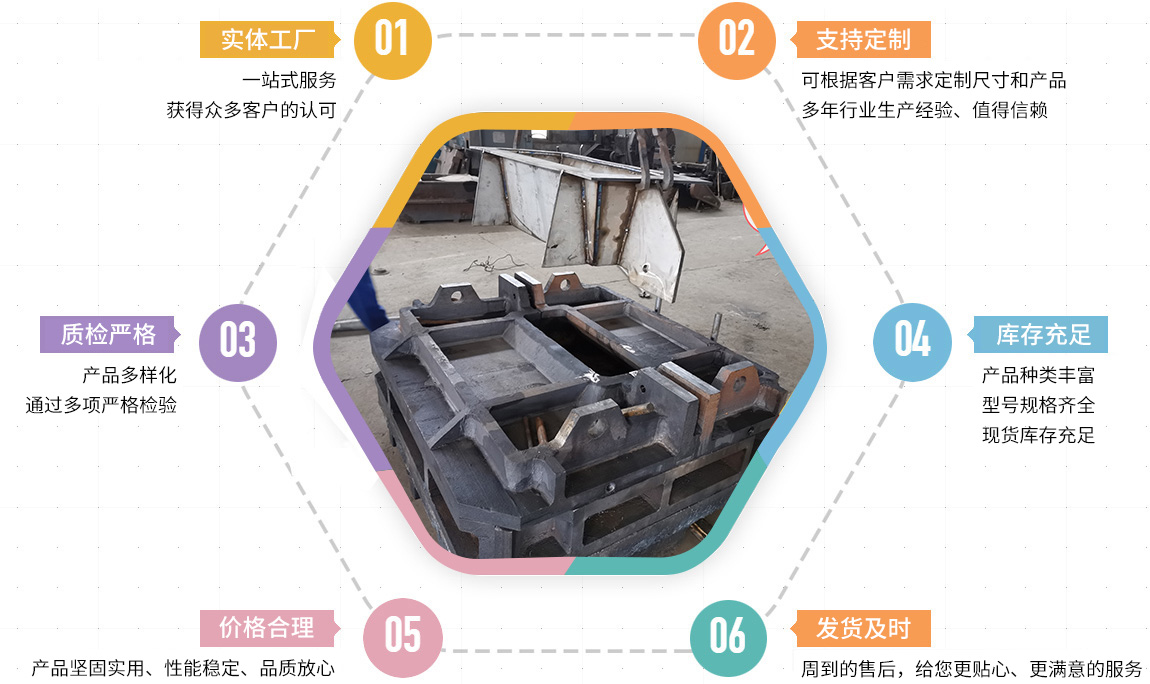 主要產(chǎn)品有:鋼筋壓塊,廢舊剪切料、礦山及水泥機(jī)械配件、鐵路機(jī)械及工務(wù)配件、電解鉛陽(yáng)極板、母模、粗銅模、陽(yáng)極模、渣包等。